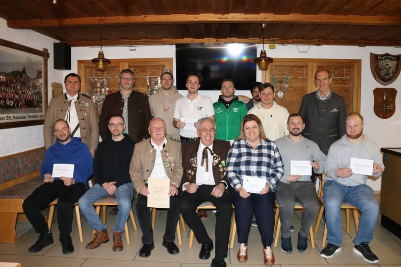 Bei unserer Jahreshauptversammlung durften wir insgesamt 15 Mitglieder für die langjährige Treue zum Verein ehren. Für 60 Jahre treue Mitgliedschaft konnten Otto Rinner und Manfred Brünnler ausgezeichnet werden. Ehrenschützenmeister Michael Neumeier ist seit 50 Jahren dabei. Roland Robold, Martin Robold, Stefan Reitberger, Josef Fischer, Jürgen Nörl und Markus Lang wurden für 40 Jahre Zugehörigkeit ausgezeichnet. Seit 25 Jahren gehören Christian Riederer, Tobias Heizmann, Artur Feicho und Marc Langer den Diesenbacher Schützen an. Für 10 Jahre Treue wurden Pavel Konovalov, Reinhard Paulikat und Martina Andrea Thoma geehrt. Für besondere Verdienst im Verein erhielten Florian Zenger, Florian Hof, Daniel Zellmer, Michael Wolf, Johannes Tröger, Lara Bösl, Paul Gratzl und Jonas Buckel die silberne Verdienstnadel vom Regentalgau, außerdem wurden Luca Riepl, Ernst Scherzer, Gerlinde Beer, Sieglinde Vogl und Karin Nießl mit der silbernen Verdienstnadel vom Schützenbezirk Oberpfalz geehrt.